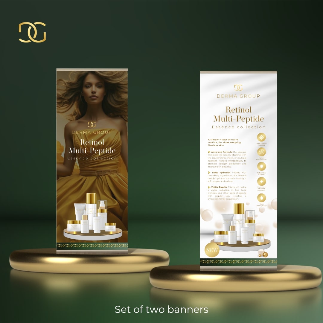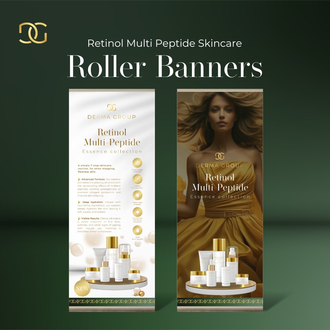 Derma Skincare Roller Banners are powerful promotional tools designed to elevate visibility for your Affiliate Skincare Programme. Available as a single banner or a set of two, they feature striking designs that attract attention and inform clients about your premium skincare offerings.