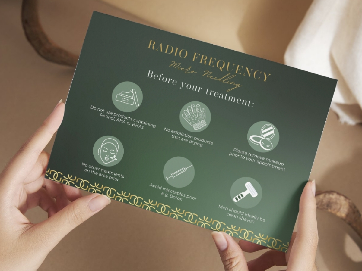 Each card has been carefully written to offer simple, practical aftercare instructions tailored to specific treatments such as dermal fillers, Botox, laser hair removal, radio frequency micro-needling, tattoo removal, Derma Hydra facials, and skin rejuvenation. Designed with both clarity and luxury in mind, the cards act as a reliable reference clients can use at home, ensuring they follow best practices long after they leave the clinic. Made from high-quality, durable cardstock, they maintain their premium feel while being handled repeatedly.